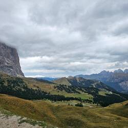 Wir fahren vom Passo Sella über den Passo Pordoi nach Arabba