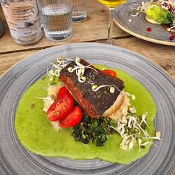 100% glutenfrei gibt's nicht wirklich oft...im originellen Wintergarten mit toller Ausblick, witzigem Service und einer "Forest Lager Bier Empfehlung" sitzen wir sehr zufrieden und warten gespannt aufMeer informatie