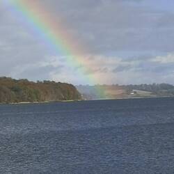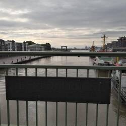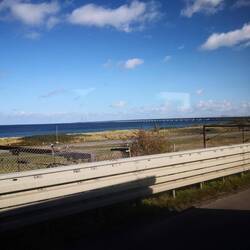 Sind heute bei Sonne, aber mit sehr viel Wind, zum Glück von vorne, gut über beide Brücken gekommen..