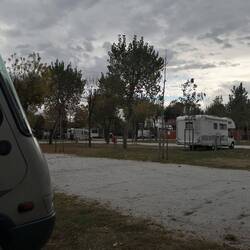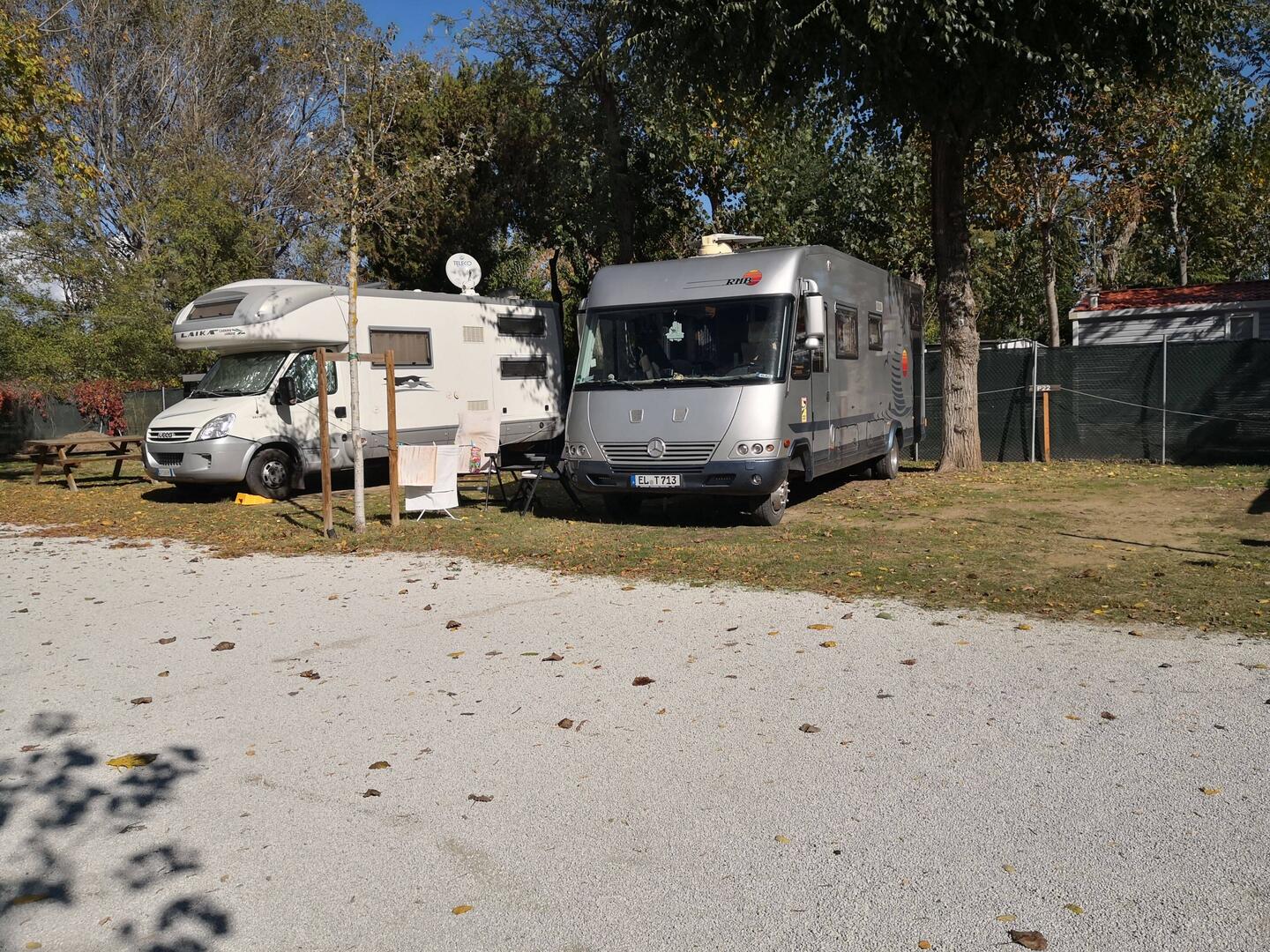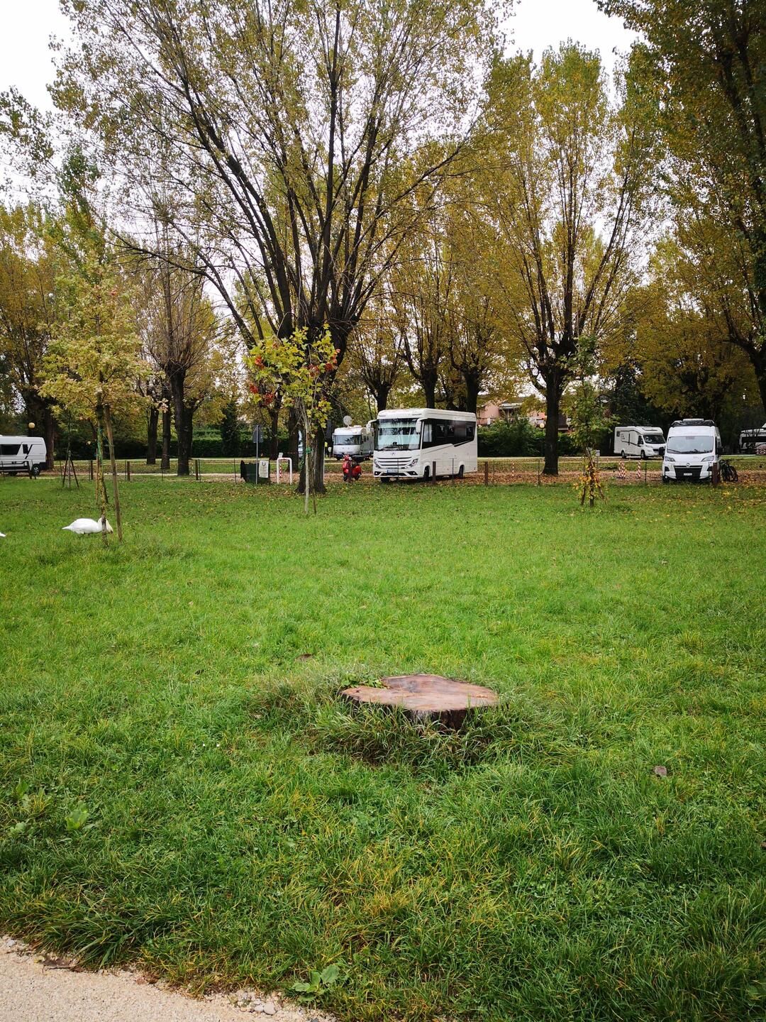 Bei trüben Wetter mit leichtem Nieselregen sind wir heute mal Maut frei Richtung Ravenna gefahren. Keine gute Idee... Strassen sehr schlecht. Haben 4 Std. gebraucht. Sind jetzt auf einem Park-, Czytaj więcej