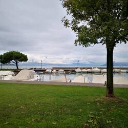 Eigentlich ein schöner Stellplatz direkt mit Blick auf den Gardasee... Wenn das Wetter mitspielen würde.. 😢☔☔☔Kurz vor unserer Ankunft fing es an zu regnen...