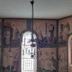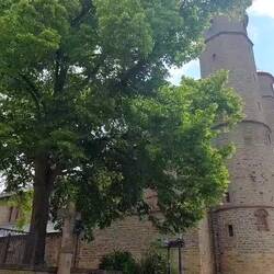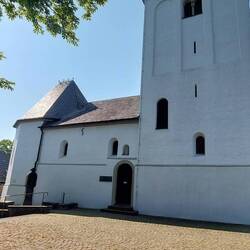 Die ersten Kilometer liegen hinter mir, und ich genieße die erste Pause im Schatten der alten Burgkirche von Alfter-Gielsdorf - sehenswert wegen seiner Wandmalereien im Chor, die man aber leider nur durch das Gatter betrachten kann. Das Kirche thront markant auf einem Hügel und liegt nahe der Kottenforster Ville - heute bekannt als Naturpark Kottenforst.