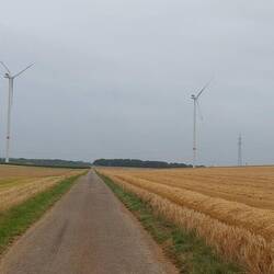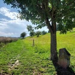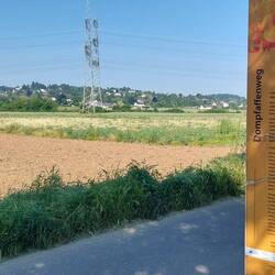 Von der Gielsdorfer Kirche aus ging es zunächst durch den schönen Kottenforst, der hier und da etwas Schatten bot. Die Luft war dort besonders angenehm. Es war erstaunlich, wie viele Fahrradfahrer heute unterwegs waren, vor allem in Richtung "Eisener Mann" bzw. Iron Man, wie ein Biker ironisch bemerkte und mir für meinen Wandertag alles Gute wünschte. Den "Eisernen Mann" habe ich nur kurz betrachtet - es ist ja auch nur eine Stange. Interessant ist nur, dass man im 18. Jahrhundert von hier aus den Wald vermessen hat, als man für den Kurfürsten das Jagdgebiet erschlossen hat. Der Höhepunkt war der Bau des Jagdschlosses Herzogsfreude, das jedoch nur wenige Jahre bestand und der Meckenheimer Allee weichen musste. Die zentrale Lage wurde dem Schloss quasi zum Verhängnis. Mit einem Hauch von Traurigkeit habe ich den Kottenforst verlassen und bin dann über endlose Feldwege in der prallen Sonne in Richtung Buschhoven gewandert. Dort habe ich die Bäckerei Vogt angesteuert. Viele kennen diesen Ort vielleicht durch den römischen Kanalweg nach Nettersheim. Aufgrund der Hitze habe ich das schöne Lüftelberg sträflich vernachlässigt und bin direkt auf der Höhe der Kiesgrube nach Flerzheim abgebogen, wo ich mich im Schatten der Kirche ausgeruht habe. Lange Zeit haben die Mönche von Heisterbach hier in Flerzheim den Ton angegeben.