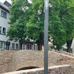 Von weitem grüßt die Ruine der Tomburg immer wieder in Richtung Ramershoven. Über Ramershoven ging es weiter über Asphaltwege, während die Sonne besonders intensiv brannte, in die Innenstadt von Rheinbach. Dort habe ich eine Pause eingelegt und mir die Stadt angesehen. Obwohl ich schon lange nicht mehr in Rheinbach war, sind mir Bekannte entgegengekommen, die mir freundlich einen Vogel gezeigt und auf das Thermometer der Apotheke gezeigt haben (32 Grad) 😆 Immer der nächste Grillabend steht.