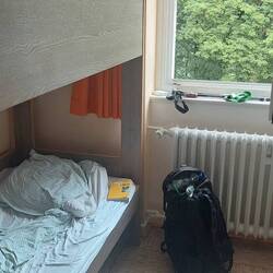 Bin jetzt doch in der Jugendherberge untergekommen und betrachte den Platzregen aus dem Fenster. Meine Füße haben größere Blasen, mal schauen wie es morgen weitergeht.Leia mais
