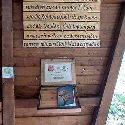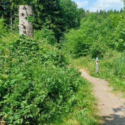 Am Hexenturm habe ich die Innenstadt verlassen. Mein nächstes Ziel war die Waldkapelle. Insgesamt war dieser Abschnitt "Pilgerpfad" der schönste, da es dort viele kleine Weiher gibt. Blöderweise gab es jedoch wieder rücksichtslose Biker, die den Pfad als Rennstrecke benutzt haben. An der Waldkapelle war es relativ ruhig, und ich habe mir in Ruhe die Grundmauern vom alten Kloster angesehen, das einst um die Kapelle herum erbaut wurde.
