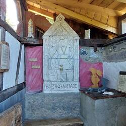 Während meiner Wanderung begegnete ich zahlreichen Gruppen, die offensichtlich ausgelassen gefeiert hatten, was bei der Hitze vielleicht etwas übertrieben war. Es gab auch mehrere Weinkutschen mit größeren Gruppen. Starkenburg ist ein malerischer Ort, wo ich zunächst in der hübschen Kapelle mit ihren kunstvollen Malereien Schutz vor der Sonne suchte. Einen farbigen Stein in Starkenburg nahm ich als Andenken mit, er ruht noch in meinem Rucksack, bei der Wärme schlicht vergessen, ihn irgendwo abzulegen, was ich dann beim nächsten Mal tun werde.