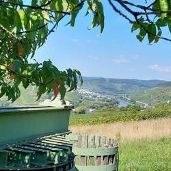 Auf den Abstecher zum Gipfelkreuz verzichte ich und steige nach Bremm ab. Am Moselufer stille ich Hunger und Durst, lehne mich zurück und gönne mir eine kleine Rast am Wasser und nicke sogar kurz ein. Den Rest bis Neef spare ich mir dann doch und nehme stattdessen den Bus nach Bullay, von wo aus es mit dem Zug zurück nach Koblenz und Bonn geht.