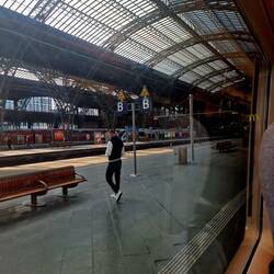 Ha im Zügli nid huere guet chönne penne, drum hani am 05:53 am Morge mau entschide nomau ufs WC zgah und ner bis prag dürezschlafä. Dr Zugbegleiter het mi de direkt abgfange mit "I've been tryingLæs mere