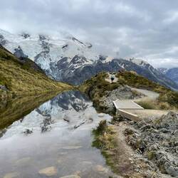 Separately our kiwi guide extraordinaire- Toni, and Kerry &Lucy had raved about the Mueller Hut hike and a severe case of FOMO soon saw us on the mountain equivalent of stair master. Even if a stair lift might have been more appropriate for us oldies, it was worth it as the clouds cleared revealing stunning views of Mt Sefton and the more retiring Mt Cook.