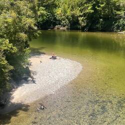 Dragged ourselves away from Dorren and Mikes and headed eastwards . First stop, Pelorus Bridge. A nice swimming spot about half way between Nelson and Blenheim, it was made all the more special- and Kiwi- when we could hire inner tubes to float down the gorge for $5. What a bargain! And what fun! Initially bobbling down some rapids then serenely floating the latter part. Lots of kiwi families enjoying the cool water on a baking hot day.