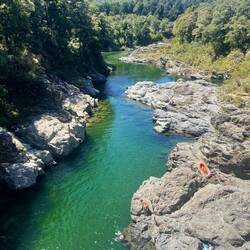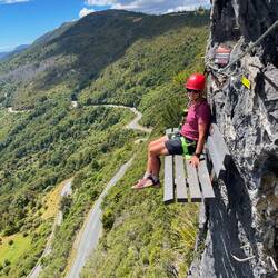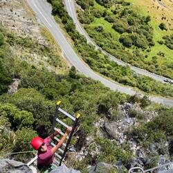 Monday morning and the workers were off to work whilst the woofers( sorry should explain: "workers on organic farms") prised themselves out of bed , hardly able to move after the previous day's battering being dragged behind a jet ski in the vague semblance of sport). Various coffees later we found ourselves at the top of the Takaka hill dangling off a via ferrata. Quite sporty and obviously airy, and all for an unbelievable $10 each!! I love a bargain.