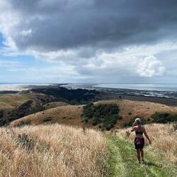 The route was amazing , snaking through the bush to the ridge line which it then sinuously followed out to the lighthouse with views out to the hole- in- the-rock rock. Spectacular. Then we reversed the route. By the time were back where we started we were beginning to realise we'd underestimated the hardness of the trail- relentless up/ down , up / down and overestimated our meagre rations. We still had another 10k to go. Although Tonis amazing homemade muffins and 100% renewable-electricity-made wriggly worms got us through the feared 3rd quarter and and home, we got to rationing the water to the sip and googling can you drink nz stream water (and other things)