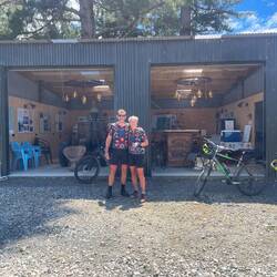 Next big day out was the Lake Dunstsan bike trail-42 k of pristine new trail with cantilevered boardwalks, swithbacks and suspension bridges. Also a great vineyard and a floating barista boat half way! Great weather and a lift home inclusive: magic! An early Christmas pressie was a team sauna with cold dips in lake Hawea 😊