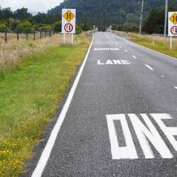 🇳🇿 Enge Brücken: Entlang von mittelgrossen Strassen sind die Brücken meist nur einspurig gebaut. Immer wieder kommt die Anweisung „One Lane Bridge“ und danach noch die Präzisierung, ob man Vortritt hat - oder nicht.