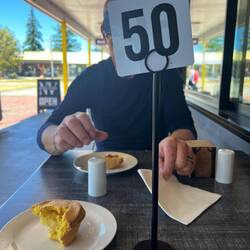 🇳🇿Kaffee trinken: das kann man in jedem kleinen Dorf, es gibt immer Kolbenkaffee, aber es dauert eine Weile bis das Werk gelungen ist. Und es gibt immer ganz viele verschiedene gebackene Köstlichkeiten dazu. Man bezahlt die Bestellung, danach erhält man ein Nümmerli und wartet eine Weile…