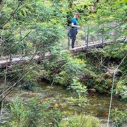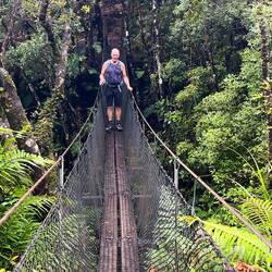Der Trestle View Campingplatz ist der Ausgangspunkt zur Besteigung der „Pinnacles, das ist eine der bekannten Wanderrouten hier auf der Coromandel Peninsula. Auf einem steinigen Weg mit vielen Stufen wandern zieht sich die Wanderung hin. Wir überqueren mehrere Hängebrücken bis es dann hoch geht zur Pinnacles Hütte. Auf der Coromandel Peninsula war der Holzschlag für viele Jahre ein wichtiger Wirtschaftszweig. Damals wurden dort nicht ganze Wälder abgeholzt, sondern nur die guten Bäume gefällt und dann auf dem Wasserweg nach Whitianga befördert, wo sie weiterverarbeitet und verschifft wurden. Man kann noch Überreste finden von den damals angelegten Vorrichtungen („Kauri Dams“). Die Pinnacles Hütte ist bewartet, es können mehr als 50 Personen übernachten. Allerdings muss man Verpflegung und möglichst viel Wasser selber mitnehmen. Es ist ein angenehmer Ort, und die Übernachtungsmöglichkeit wird anscheinend auch gut genutzt. Nach der Hütte ist dann der Aufstieg zu den Pinnacles nicht mehr lang, aber umso steiler und ziemlich ausgesetzt. Oben angelangt wird man mit einer wunderbaren Aussicht belohnt - bis ans Meer kann man hier sehen.Læs mere