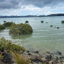 Endlich hat nun die Schönwetterphase begonnen und wir können das milde Klima und die malerische Inselwelt so richtig geniessen. Wir wandern der Küste entlang zur nächsten grösseren Bucht, der Long Bay zum Sonnenbaden und Schwimmen. Das Wasser ist hier sehr ruhig, man könnte meinen wir wären am Ufer eines Sees. Hier wachsen auch Mangroven in vielen Buchten mit flachem Wasser und etwas weiter draussen im Meer sehen wir eine Austernkultur.