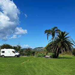 Der Ort Coromandel liegt auf der Westseite der Halbinsel, es ist der Ausgangspunkt, um zur nördlichen Spitze zu gelangen oder auch zur Ostseite, die direkt am offenen Meer liegt. Aufgrund der grossen Regenfälle sind einige Orte im Osten nicht zugänglich, und wir müssen zuerst abklären, wohin es noch weitergehen könnte. Wir übernachten auf einem Campingplatz mit wunderbarem Rasen mit exotischen Pflanzen und bleiben grad noch einen Tag, um die Gegend zu erkunden.