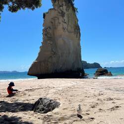 Leider sind noch viele Strassen und auch Campingplätze im Norden der Coromandel Peninsula gesperrt. Wir wählen deshalb einen der bekanntesten Strände auf der Ostseite und fahren zur Hotwater Beach. Dort möchten wir für drei Tage so richtig Strandferien machen - jetzt wo das Wetter endlich so richtig warm und sonnig ist.