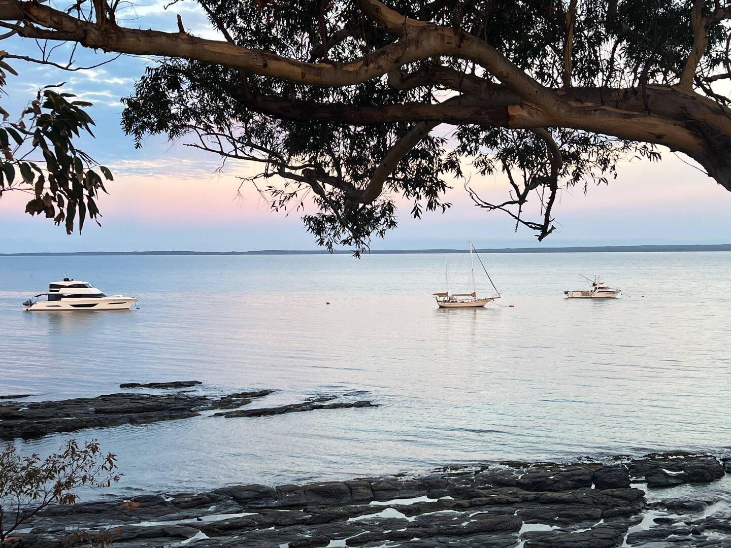Am Montagmorgen regnet es sehr ergiebig in Sydney, das ist genau das richtige Wetter, um auf Einkaufsbummel zu gehen, denn ich brauche ein neues Badekleid. Wir verabschieden uns von Nikki und Nigel und fahren in den Stadtteil Chatswood zum Westfield Center. In diesem riesigen Einkaufspark verlieren wir uns fast ein wenig. Schliesslich finde ich ein schönes blau-schwarzes Badekleid, das perfekt sitzt. Immer noch im Regen fahren wir weiter südwärts, wo uns schönes und sehr warmes Wetter erwartet. Huskisson ist unser nächstes Ziel. Nach dem Dinner beim Chinesen erkunden wir den Strand mit dem ultraweissen Sand, den schwarzen Felsen und dem türkisfarbenen Wasser. Aus der Vogelperspektive sieht dieser Bay aus wie eine riesige runde Pfütze mit ruhigem Wasser. Dies sind ideale Bedingungen für Delphine, und deshalb werden hier Bootstouren angeboten mit „Dolphinwatch“.