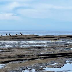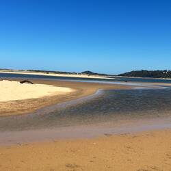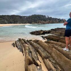Bald kommen wir zur „Sapphire Coast“, das ist der südlichste Teil von New South Wales - schon fast an der Grenze zum Staat Victoria. Wir fahren durch grosse ursprünglich wirkende Eukalyptuswälder und gelangen nach Merimbula. Der Ort liegt an einem engen Inlet, den sie „Merimbula Lake“ nennen. In diesem ruhigen Gewässer werden grossflächig Austern gezüchtet. Weiter draussen kommt man zum offenen Meer, wo wir auf einen langen hellen Sandstrand treffen.