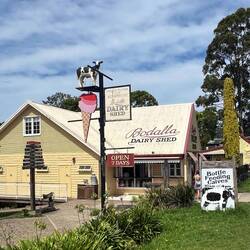 Weiter südlich machen wir Halt im kleinen Ort Bodalla, hier treffen wir nun auf die traditionelle Landwirtschaft, wie sie wahrscheinlich von den Siedlern eingeführt wurde. In der grossen Käserei, die auch zu Schauzwecken dient, gibt es Milkshakes wie vor 40 Jahren, und man kann Cheddar Käse mit unterschiedlichsten Aromen kaufen - und natürlich auch Yoghurt.