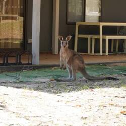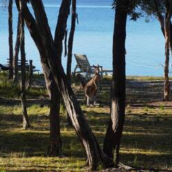 Bereits beim Frühstück kommen Känguruhs vorbei, und am Strand sind schwarze Schwäne und verschiedene kleinere Wasservögel Dauergäste. Die Vögel sind ebenfalls sehr zutraulich, auch deshalb, weil der Vermieter uns Vogelfutter bereit gestellt hat, und wir dies grosszügig verfüttern.