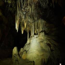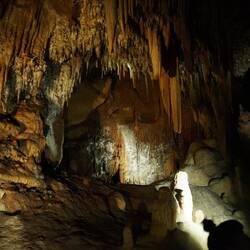 Die Höhlen in Buchan sind typische Kalkstein-Karsthöhlen. Wir besuchen nur die eine der beiden begehbaren Höhlen, eine enge Höhle mit wunderbar hell glänzenden Stalaktiten und Stalagmiten, alles ein bisschen märchenhaft. Deshalb heisst sie „Fairy Cove°. Die Höhle wurde anfangs 20. Jahrhundert entdeckt durch einen Höhlenspezialisten, der vom viktorianischen Staat angestellt worden war. Viktoria wollte unbedingt auch eine Höhle als Touristenattraktion haben, gleich wie die beiden „Konkurrenten“ Queensland und New South Wales. Die Staaten South Australia, Western Australia und Northern Territory waren zu dieser Zeit wohl noch nicht so weit entwickelt…..
