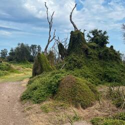 Am Samstag wollen wir die Cathedral Cave noch vom Land her anschauen. Wir fahren zur Hahei Beach und wandern von dort aus der Küste entlang auf einem gut ausgebauten Wanderweg. Auch dieser Weg wurde vom Unwetter verschüttet. Die Stellen, wo es Erdrutsche gab, sind noch deutlich zu sehen. Zum Glück wurde der Weg bereits wieder geräumt!