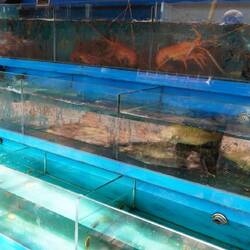 Wir kommen sehr früh am Donnerstagmorgen an in Singapur, und wir haben viel zu organisieren bei der Ankunft. Zum erstenmal reisen wir auf eigene Faust in einem asiatischen Land, aber zum Glück sprechen hier die meisten Leute englisch. Mit etwas Internetrecherche finden wir einen Ort am Flughafen, wo wir die unförmigen Koffer für 13 Tage aufbewahren lassen können. Danach lösen wir die ÖV Karte für die kommenden drei Tage und schon sind wir auf dem Weg in die Stadt. Wir deponieren unser Gepäck im Hotel und suchen vorerst einen schönen Ort, wo wir uns hinsetzen und einen Kaffee oder Tee trinken können. Im Aussenbereich eines Restaurants am Singapore River erhalten wir das Gewünschte. Wir entschliessen uns, weiter dem Fluss entlang zu laufen und kommen vorbei an vielen Hotels, Bars und Restaurants. Die meisten sind am Vormittag noch nicht offen, aber bereits sehen wir die Meerestiere in den Aquarien, die wohl im Laufe des Tages gekocht werden.