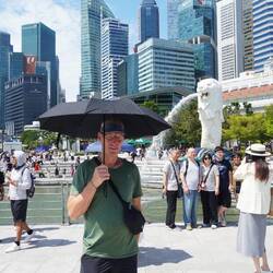 Schliesslich landen wir bei einer der grössten Touristenattraktionen, beim „Merlion“, dem Symbol von Singapur. Es ist eine Figur, die sich zusammensetzt aus dem Schwanz einer Meerjungfrau (Mermaid) und dem Kopf eines Löwens - eine etwas sehr künstliche Figur, unserer Meinung nach, aber ein begehrtes Fotosujet.