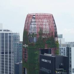 Am Freitagabend fahren wir für einen kurzen Augenschein zum „Garden of the Bay“. Die Beleuchtung der Anlage zusammen mit dem Hotel Marina Bay Sands ist sehr opulent, aber auch zauberhaft und inspirierend. Plötzlich sehen wir auf der anderen Seite der Bay ein Feuerwerk steigen - ist dies vielleicht extra für uns? Mitnichten! Wir erfahren, dass an diesem Ort jeden Abend ein Feuerwerk gezündet wird. Hier ist einfach alles möglich, und es wird kein Aufwand gescheut. Am Samstag fahren wir zur Siedlung „Pinnacles@Duxton“, das ist ein Bauwerk bestehend aus 7 Hochhäusern, die in der Mitte und übers Dach miteinander verbunden sind (im 26. und im 50. Stockwerk). Diese Hochhäuser wurden durch den Staat geplant und verwirklicht und stehen seit 2010 der Bevölkerung zur Verfügung. Anscheinend wurden die fast 2000 Wohnungen verkauft, aber zu einem kontrollierten Preis. Die periodisch nötigen Renovationen übernimmt der Staat. In Singapur leben mehr als 70% der Bevölkerung in staatlichen Wohnungen, ein erstaunlich hoher Anteil. Nach längerem Suchen und Herumfragen finden wir den Eingang, den Besucher nehmen können, um in den 50. Stock zu gelangen. Wir lassen die imposante Aussicht von allen Dächern der Gebäude auf uns wirken und stellen fest, dass es in der Nachbarschaft noch höhere Gebäude gibt.