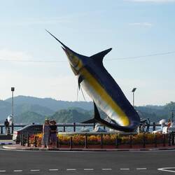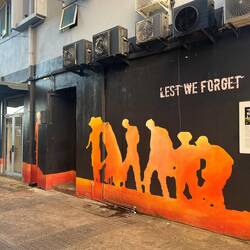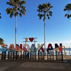 Am Nachmittag wandern wir vom Hotel in die Stadt Sandakan, die zweitgrösste Stadt im Bezirk Sabah. Erneut treffen wir auf unzählige kleine Läden und Markstände, hier sind es eher Kleiderläden. Typisch für Sandakan sind die vielen Wandmalereien - alle bereits ein wenig verblasst. An mehreren Orten stehen Gedenktafeln oder Mahnmale, welche an den „Todesmarsch von Sandakan“ 1945 erinnern, als die Japaner ihre Kriegsgefangenen zwangen, quer durch den Dschungel zu marschieren. Nur vier Australier überlebten den Marsch - dank der Hilfe von Einheimischen.