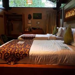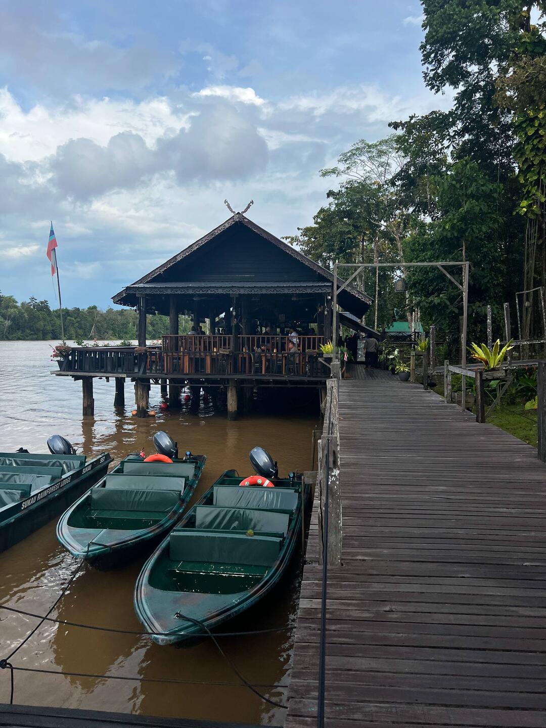 Nach diesem eindrücklichen Start werden wir mit einem Schnellboot zur Sukau Rainforest Lodge gebracht, einem Luxushotel am Kinabatangan Fluss mitten im Regenwald. Hier wird alles mit dem Schiff transportiert, es gibt keinen Zugang via Strasse.