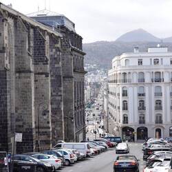 Vi hann se Notre-Dame-de-l’Assomption katedralen som är byggd i svart lavasten.