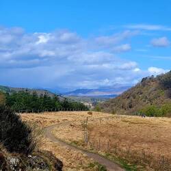 We had a very long steep decline and then climb, and the road just seemed to be going on and on, one hill after another. some of it was very beautiful though. When we reached the point where you can follow the traditional path or take the road, we met a group of young people who ahd passed me earlier on the road, they were having a break. They had done the WHW several times and were doing it over just four days. they told us that the road was shorter by about four miles, and so we decided to take that route. It didn't take us long to question our choice, as we seemed to go up on hill after another, when we reached a particularly long and steep hill our spirits sank a bit. however, the only way is forward and we just kept putting one foot in front of another, and before long we had left that hill behind.