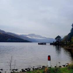 Today's walk was in two distinct sections, at roughly the halfway point is the village of Balmaha. The name comes from the Scots Gaelic Bealach Mo-Cha, 'the pass of Saint Mo-Cha'. It is a popular tourist spot on the shores of Loch Lomond, and has a statute of Tom Weir, a Scottish climber, author and broadcaster famous for his TV show Weir's Way throughout the 70s and 80s. It also has cafés and restaurants, and shops, and is therefore a popular stopping point for anyone doing the WHW.