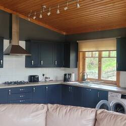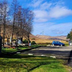 By the time we got on the hill above Crainlarich, Chris was struggling, I think the exertion of the walk yesterday took a lot out of him. So, when we reached the point where we could divert to Crainlarich we decided to descent to the village for some refreshments. after coffee and cake we did feel a bit better, but Meg was concerned that Chris was not able for the climb back up the hill and then onward to Tyndrum. Kathleen was also in pain so we decided to go to plan B. I found a phone box and called a taxi company but they had no taxis available for the rest fo the day, apparently there were major roadworks just before Tyndrum and journey's were taking twice as long. By this time the rain had come on again but heavier, so we went for the train, it was just one stop and after waiting about 30 minutes the train arrived and less than 10 minutes later we were walking from Tyndrum station down towards the lodges.