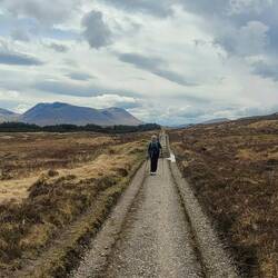 The weather got a bit more overcast and it was quite windy on Rannoch Moor, but the rain stayed off, as we got within sight of Glen Coe two young women came running past us, i told them they were making us look bad, they laughed and kept going and were quickly out of sight.