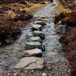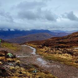 The rain was fairly steady and in fact didn't stop until after we arrived at the Bridge of Orchy Hotel, it was quite misty as well. so, I didn;t stop too often to take photos. The path was fairly flat so we made good time, I arrived at the hotel in 2 hours and 45 minutes. We arrived too early for our rooms but went to the very comfortable restaurant and ordered lunch, it was very good but a bit expensive, but they did let us int our room an hour early. We were in one of the new lodges beside the hotel and it was fabulous, modern, compact, very clean, with comfy beds and a great shower.