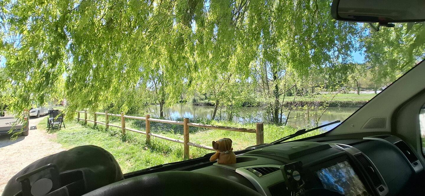 Prostorček ob zapornici na plovnem kanalu ob reki Charente. Ni parking, bolj piknik plac, ampak dokler naju ne naženejo, je super. Mimo gre markirana kolesarska pot V92, ki kar gre in gre. Ampak jeもっと詳しく