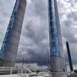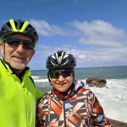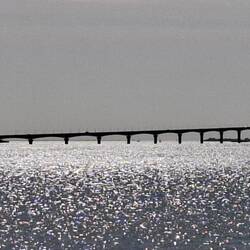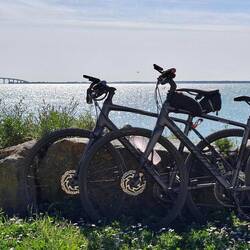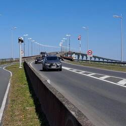 Štart na celini, potem pa preko mostu na otok. Hud most, na eni strani dvosmerna kolesarska steza, na drugi pa za pešce. Pa hudo je pihalo. Tja grede z vetrom v hrbet je blo izi, nazaj grede pa malもっと詳しく
