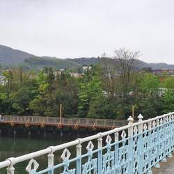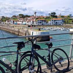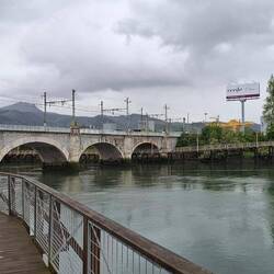 Plan je bil, da greva s kolesi v Španijo do mesta Hondarribia, pa ga je dež pokvaril. Sva uporabila plan B in šla peš po mostu nad reko Bidasoa na špansko stran.