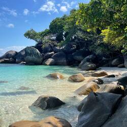 Heute Nachmittag war ich noch einmal an einem schönen Strand hier baden mit super weißem Sand und glasklarem türkisfarbenen Wasser🐠🌊🤿