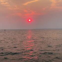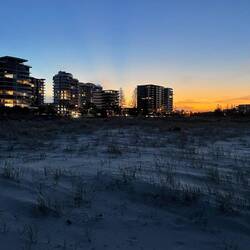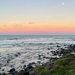 Wanderung an der Küste und am Strand entlang🌊🏖️ Zum Abschluss des Tages habe ich mir noch den Sonnenuntergang mit Blick auf die Skyline angeschaut 🌆 Den Vollmond konnte man heute auch sehr gut sehen🌕
