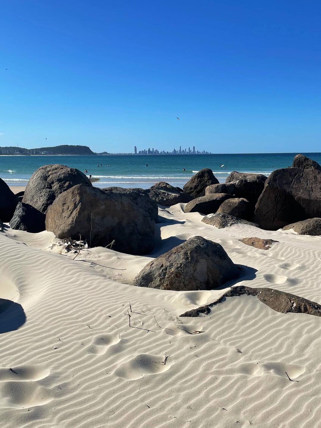 Erkundung neuer Strände mit Blick auf die Skyline und einigen Surfern🏙️🌊🏄🏼♀️