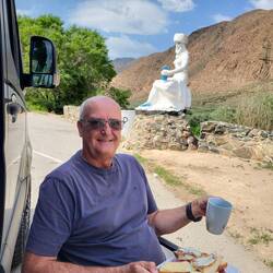 gg 10 Uhr Frühstück an einem Parkplatz...dann ging es zur Kengsu Aussicht noch mit relativ guter Straße...2400m ....anschließend zum Kalmak-Ashum Pass auf 3447m Höhe auf Schotterstrasse...vor uns M320....eigentlich zu langsam für Schlumpi....