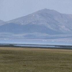 nur 12'C oben...auf einer Hochebene für Pferde,Kühe,Schafe und Jurten wie in der Mongolei...leichter Regen kam auf...der See etwas weg von der Strasse...