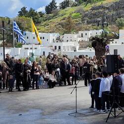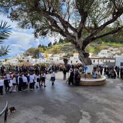 Feierlichkeiten in Lindos beigewohnt, zum Hausstrand gegangen, durch dieBerge an die Westküste gefahren und durch die Berge zurück gekommen.